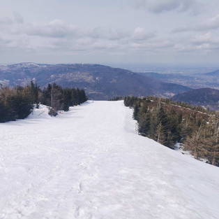 Szlak jest oprószony świeżym śniegiem. Podejście na Baranią Górę początkowo tradycyjnie płynie. Potem już jest śnieg. Na szczycie wychodzi słońce i robi się przyjemnie. Kieruje się czerwonym szlakiem w kierunku Skrzycznego. Podczas GSB ten odcinek pokonywałam w koszmarnej ulewie, więc nic nie widziałam. Teraz rozkoszuje się to przestrzenią. Odcinek pomiędzy Baranią, Malinowską Skałą i Skrzycznym jest niesamowicie malowniczy. Aura jak z bajki: słońce i chmury tańczące na niebie, pod nogami ubity śnieg. Dlatego też można spotkać tu dużo turystów i skiturowców. Na Skrzycznym robię przerwę na obejrzenie mapy i picie. W międzyczasie podchodzi do mnie Kasia z Gliwic, która obserwuje mój profil. Pozdrawiam:)